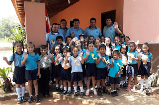 The picture above shows the children and teachers at my local lower school. This covers classes from pre school up to year six. From then for the rest of the school years the children go up to a nearby upper school, or as they are known in Paraguay, a collage.
